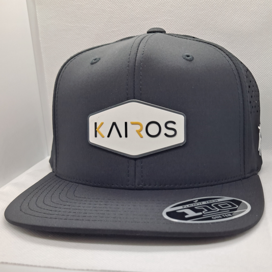 KAIROS Black Flat Bill Mid Crown Performance PVC Patch Hat
