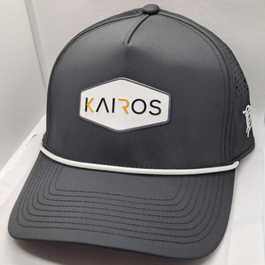 KAIROS Black Five Panel White Rope Mid Crown Performance PVC Patch Hat